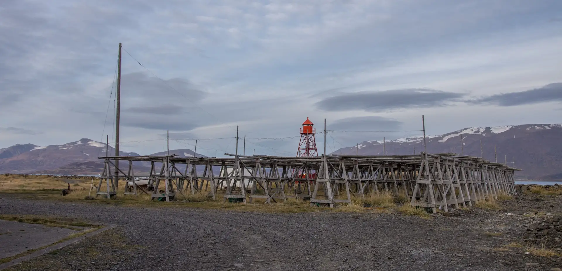 Fishing is a big part of the town's economy and there was a large old factory a short way down the fjord that we visited. Beside the water were large wooden racks where Hákarl (fermented Greenland shark) is prepared. The smell was so strong that we had smelt it while out on the boat earlier in the day. As far as we could see there weren't even any pieces there!